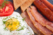 Zdjęcie "smażone jajka, kiełbaski, boczek i tosty" może być wykorzystywane do celów osobistych i komercyjnych zgodnie z warunkami zakupionej licencji Royalty-free. Obraz jest dostępny do pobrania w jakości wysokiej rozdzielczości do 5760x3840.