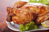 cały złoty Kurczak pieczony z pieczonymi ziemniakami, świeży pomidor