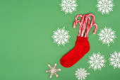 różne bombki świąteczne i ciasteczka na zielonym tle z miejsca do kopiowania
