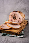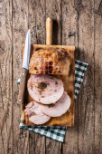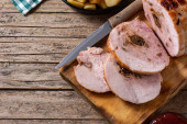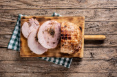 Wypchany kurczak z orzechami na wiejskim drewnianym stole