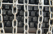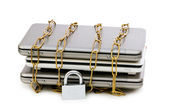 koncepcja bezpieczeństwa komputera z laptopa i łańcuch
