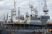 Sewastopol, Ukraina-25 października 2012: Rosyjskie statki zakotwiczone w zatoce Sewastopola, Krym, Ukraina