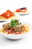 spaghetti z Pulpety w sosie pomidorowym na talerzu