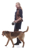 w pełnym wzroście. szczęśliwy casual kobieta z a pet dog