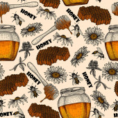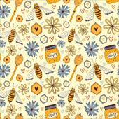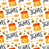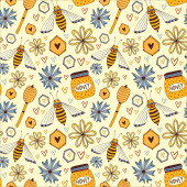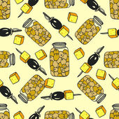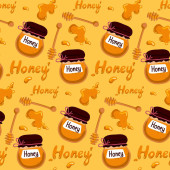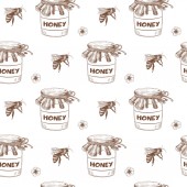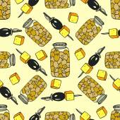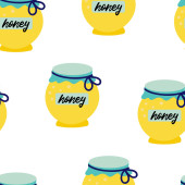 Wzór ze słoikiem miodu i wapnem. Bezszwowe tło wektorowe do domowego projektowania miodu. Papier do pakowania. Druk na opakowanie