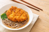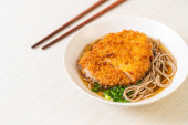 Soba ramen makaron z japońskim kotletem wieprzowym (tonkatsu) - azjatycki styl żywności