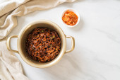 Zdjęcie "Koreański czarny spaghetti lub instant makaron z pieczonym sosem sojowym chajung (chapagetti) - koreański styl żywności" może być wykorzystywane do celów osobistych i komercyjnych zgodnie z warunkami zakupionej licencji Royalty-free. Obraz jest dostępny do pobrania w jakości wysokiej rozdzielczości do 5760x3840.
