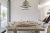 Nowoczesny dom z basenem ogrodowym i drewnianym tarasem