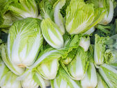 Tło żywności chińskiej kapusty Bok choy na słonecznym rynku rano w Hiszpanii. Strzał z bliska z selektywną ostrością