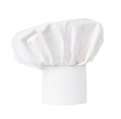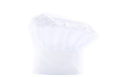 Szef kuchni kapelusz i różowy trzepaczka izolowane na białym tle
