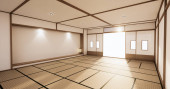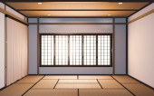 Pusty pokój w stylu japońskim. Renderowanie 3D