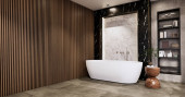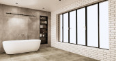 Wanna i WC w stylu zen łazienka z inteligentnym tv na ścianie design.3D rendering