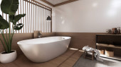 Zdjęcie "Łazienka i WC na stylu zen łazienki.3D rendering" może być wykorzystywane do celów osobistych i komercyjnych zgodnie z warunkami zakupionej licencji Royalty-free. Obraz jest dostępny do pobrania w jakości wysokiej rozdzielczości do 5760x3840.