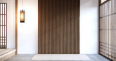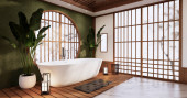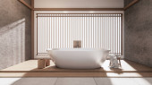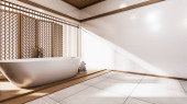 wanna w japońskiej łazience ma boczny basen design pokój jest przestronny i lekki w naturalnych kolorach. Renderowanie 3D