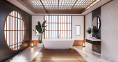 Zdjęcie "Tropikalna łazienka japoński styl .3D rendering" może być wykorzystywane do celów osobistych i komercyjnych zgodnie z warunkami zakupionej licencji Royalty-free. Obraz jest dostępny do pobrania w jakości wysokiej rozdzielczości do 5760x3840.