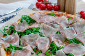 Pinsa z szynką parmeńską i grzybami, pizza rzymska.