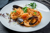 Zdjęcie "Makaron z owocami morza spaghetti" może być wykorzystywane do celów osobistych i komercyjnych zgodnie z warunkami zakupionej licencji Royalty-free. Obraz jest dostępny do pobrania w jakości wysokiej rozdzielczości do 5760x3840.