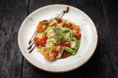 Zdjęcie "sałatka z łososiem na ciemnym stole" może być wykorzystywane do celów osobistych i komercyjnych zgodnie z warunkami zakupionej licencji Royalty-free. Obraz jest dostępny do pobrania w jakości wysokiej rozdzielczości do 5760x3840.