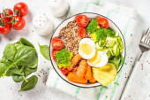 Zdjęcie "Budda miska z gryki i warzyw." może być wykorzystywane do celów osobistych i komercyjnych zgodnie z warunkami zakupionej licencji Royalty-free. Obraz jest dostępny do pobrania w jakości wysokiej rozdzielczości do 5760x3840.
