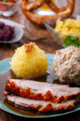 Zdjęcie "pieczona wieprzowina bawarska z pierogami" może być wykorzystywane do celów osobistych i komercyjnych zgodnie z warunkami zakupionej licencji Royalty-free. Obraz jest dostępny do pobrania w jakości wysokiej rozdzielczości do 5760x3840.