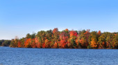 Kornwalia, Ct, USA Jesienne liście i jesienne kolory nad jeziorem Wangum