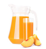 Świeżo wyprodukowany smaczny sok brzoskwiniowy na białym tle