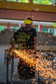 Zdjęcie "Muadzam Shah, Malezja - 14 października 2020: Młody człowiek przy użyciu frezu do blach, narzędzi dla przemysłu i budownictwa." może być wykorzystywane do celów osobistych i komercyjnych zgodnie z warunkami zakupionej licencji Royalty-free. Obraz jest dostępny do pobrania w jakości wysokiej rozdzielczości do 5760x3840.