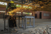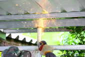 Muadzam Shah, Malezja - 14 października 2020: Młody człowiek przy użyciu frezu do blach, narzędzi dla przemysłu i budownictwa.