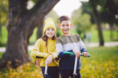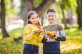 Zdjęcie "Przyjaźń między rodzeństwem. Rodzeństwo razem na zewnątrz z jasnym kolorowym tłem. Jesienny portret dzieci. Brat i siostra bawią się w jesiennym parku. Rodzinna koncepcja weekendowa aktywna jesień." może być wykorzystywane do celów osobistych i komercyjnych zgodnie z warunkami zakupionej licencji Royalty-free. Obraz jest dostępny do pobrania w jakości wysokiej rozdzielczości do 5760x3840.