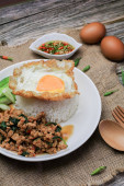 Zdjęcie "Chrupiący omlet z mieloną wieprzowiną i sosem warzywnym" może być wykorzystywane do celów osobistych i komercyjnych zgodnie z warunkami zakupionej licencji Royalty-free. Obraz jest dostępny do pobrania w jakości wysokiej rozdzielczości do 5760x3840.