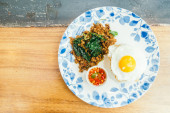 Zdjęcie "Chrupiący omlet z mieloną wieprzowiną i sosem warzywnym" może być wykorzystywane do celów osobistych i komercyjnych zgodnie z warunkami zakupionej licencji Royalty-free. Obraz jest dostępny do pobrania w jakości wysokiej rozdzielczości do 5760x3840.