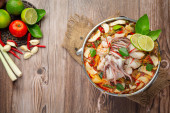 Zdjęcie "Tajskie jedzenie; makaron instant pikantny gotować z owoców morza i wieprzowiny w gorącym garnku" może być wykorzystywane do celów osobistych i komercyjnych zgodnie z warunkami zakupionej licencji Royalty-free. Obraz jest dostępny do pobrania w jakości wysokiej rozdzielczości do 5760x3840.