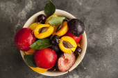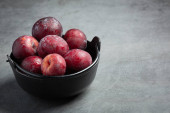 czerwona śliwka umieścić w białej misce na białej podłodze