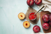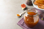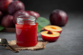 butelka dżemu śliwkowego umieszczona na ciemnej podłodze