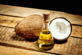 dzbanek z oleju kokosowego kokos whit umieszczony na ciemnym tle