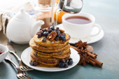 Zdjęcie "Naleśniki z bananem i jagodami" może być wykorzystywane do celów osobistych i komercyjnych zgodnie z warunkami zakupionej licencji Royalty-free. Obraz jest dostępny do pobrania w jakości wysokiej rozdzielczości do 5760x3840.