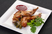 Zdjęcie "Pieczone królicze udka z sosem jeżynowym" może być wykorzystywane do celów osobistych i komercyjnych zgodnie z warunkami zakupionej licencji Royalty-free. Obraz jest dostępny do pobrania w jakości wysokiej rozdzielczości do 5760x3840.