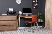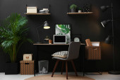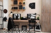 Nowoczesne miejsce pracy z wygodnym krzesłem w stylowym wnętrzu biura