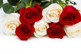 biało -czerwone róże na białym tle