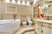 Zdjęcie "łazienka z pięknym wnętrzem" może być wykorzystywane do celów osobistych i komercyjnych zgodnie z warunkami zakupionej licencji Royalty-free. Obraz jest dostępny do pobrania w jakości wysokiej rozdzielczości do 5760x3840.