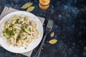 Zdjęcie "Pierogi ze śmietaną i ziołami" może być wykorzystywane do celów osobistych i komercyjnych zgodnie z warunkami zakupionej licencji Royalty-free. Obraz jest dostępny do pobrania w jakości wysokiej rozdzielczości do 5760x3840.