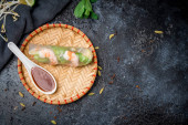 Zdjęcie "Tradycyjny tajski makaron. Smażony makaron Pad tajski z krewetkami i kurczakiem w misach kokosowych ze świeżą limonką, chili nad liściem banana na rustykalnym drewnianym krześle. Widok z boku. Skupienie selektywne " może być wykorzystywane do celów osobistych i komercyjnych zgodnie z warunkami zakupionej licencji Royalty-free. Obraz jest dostępny do pobrania w jakości wysokiej rozdzielczości do 5760x3840.