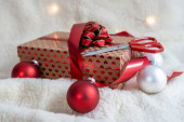 Zdjęcie "Świąteczne kulki i prezent" może być wykorzystywane do celów osobistych i komercyjnych zgodnie z warunkami zakupionej licencji Royalty-free. Obraz jest dostępny do pobrania w jakości wysokiej rozdzielczości do 5760x3840.