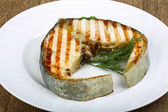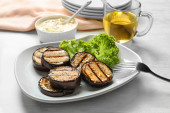 Grillowany ser Camembert ze świeżym tymiankiem na talerzu