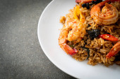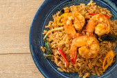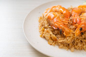 Olbrzymie krewetki smażony ryż z pastą krewetkową na płytce