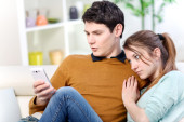piękna para kłótnie wobec zmieniać tv skierować na pilocie zdalnego sterowania