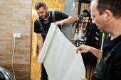 Zdjęcie "Sprzedawca człowiek telefon komórkowy profesjonalny konsultant w sklepie lub sklepie. " może być wykorzystywane do celów osobistych i komercyjnych zgodnie z warunkami zakupionej licencji Royalty-free. Obraz jest dostępny do pobrania w jakości wysokiej rozdzielczości do 5760x3840.