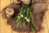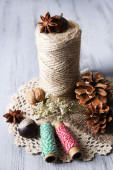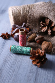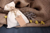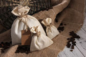 worek z przyprawami, na drewnianym stole, na tle worze