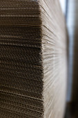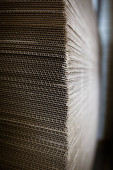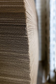 Produkty i tektura falista. Fabryka do produkcji i przetwarzania papieru. Prześcieradła, stosy. Wybiórcze skupienie. Pojemność i opakowanie.