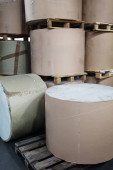 Zdjęcie "Duży stos papieru drukującego Rolls w Magazynie. Koncepcja produkcji papieru i tektury." może być wykorzystywane do celów osobistych i komercyjnych zgodnie z warunkami zakupionej licencji Royalty-free. Obraz jest dostępny do pobrania w jakości wysokiej rozdzielczości do 5760x3840.